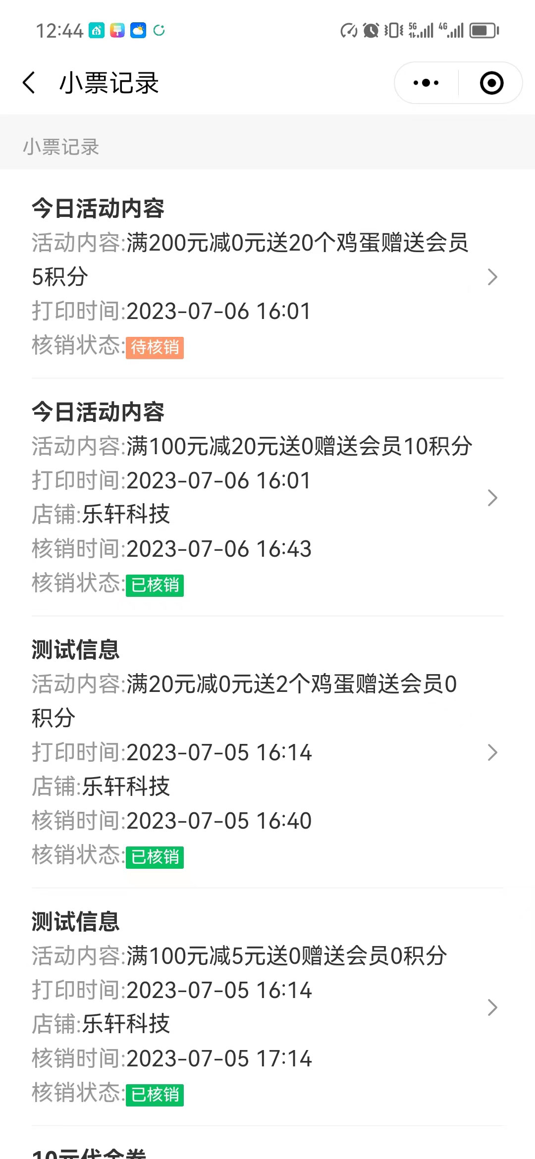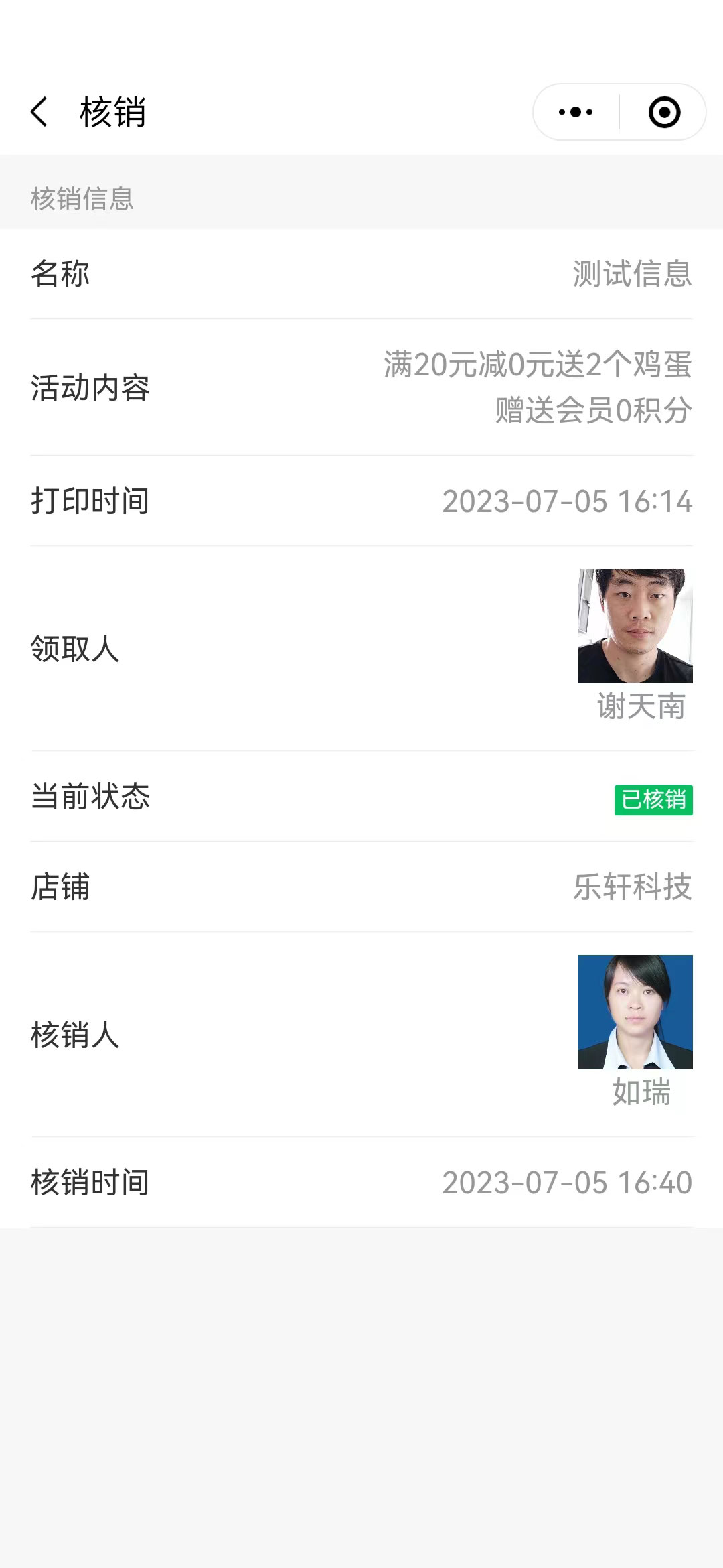 小程序添加会员信息,通过人脸识别机面板识别成功后才能成功注册会员,每天通过面版机签到赠送积分,小票打印机打印出代金券和核销码,一码多核,消费核销